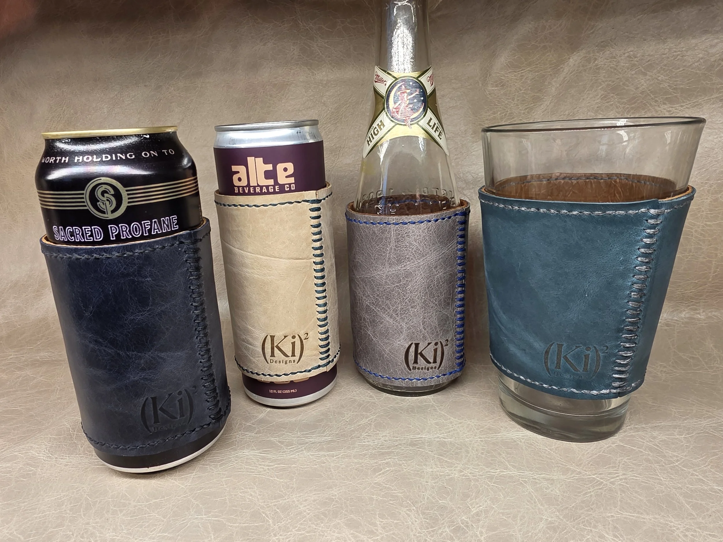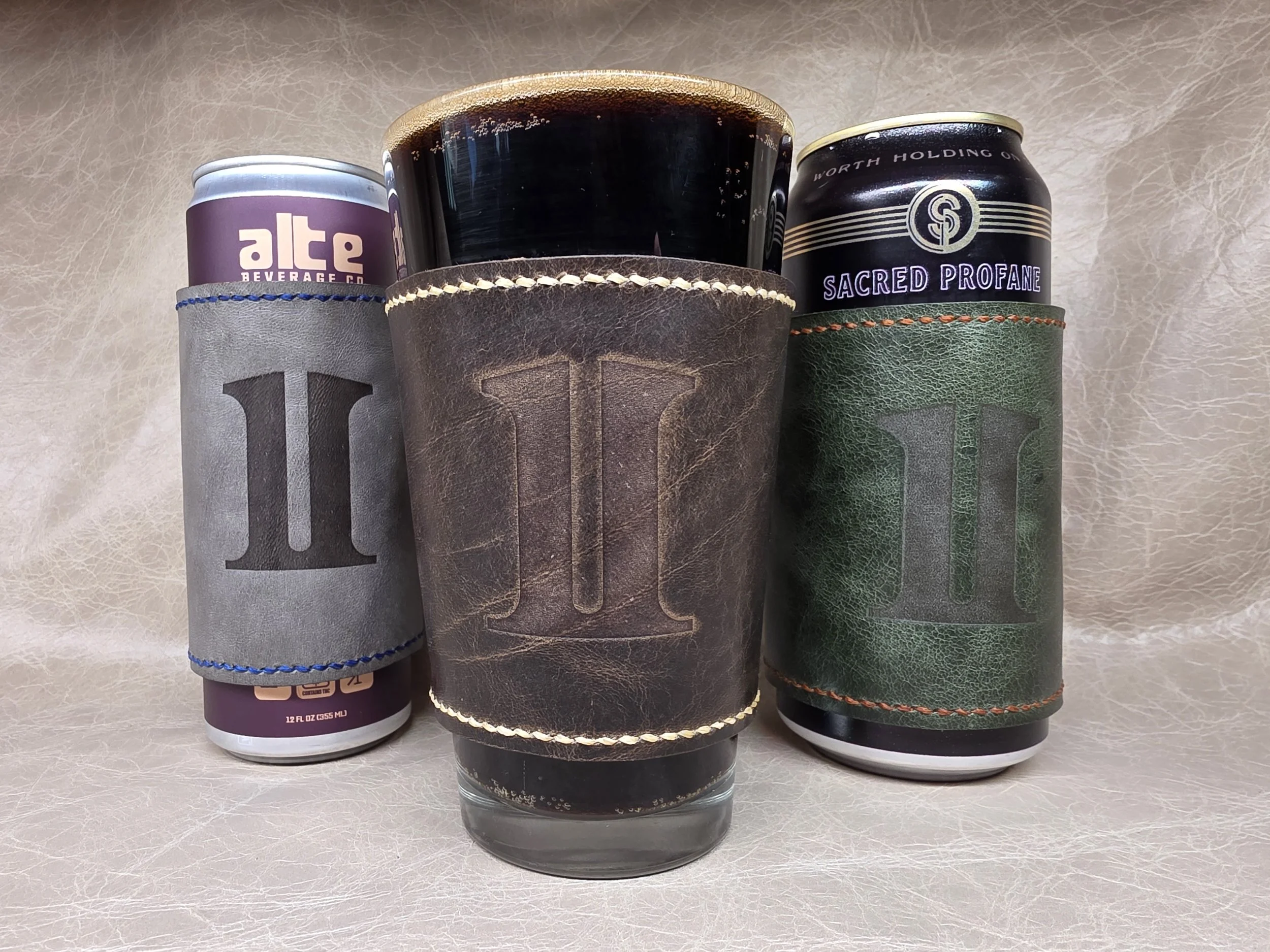 Hand-Stitched Leather Beverage Sleeves for Pints, Cans & Bottles